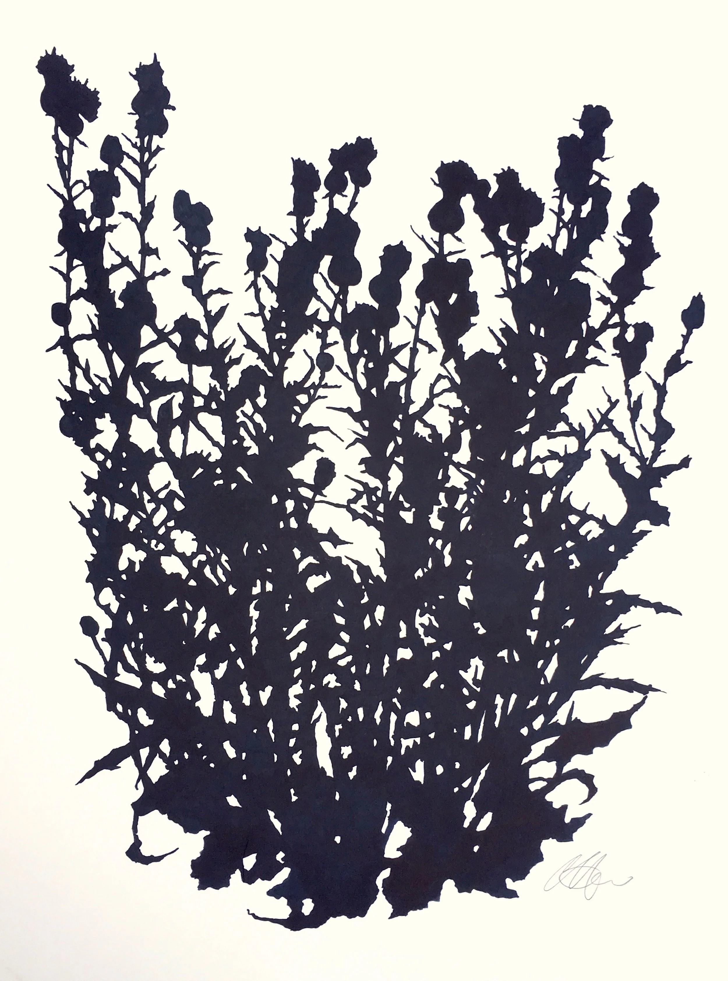 Thistle Study, Matfield Green 3 (August), ink on paper, 30 x 22.5” (sold)