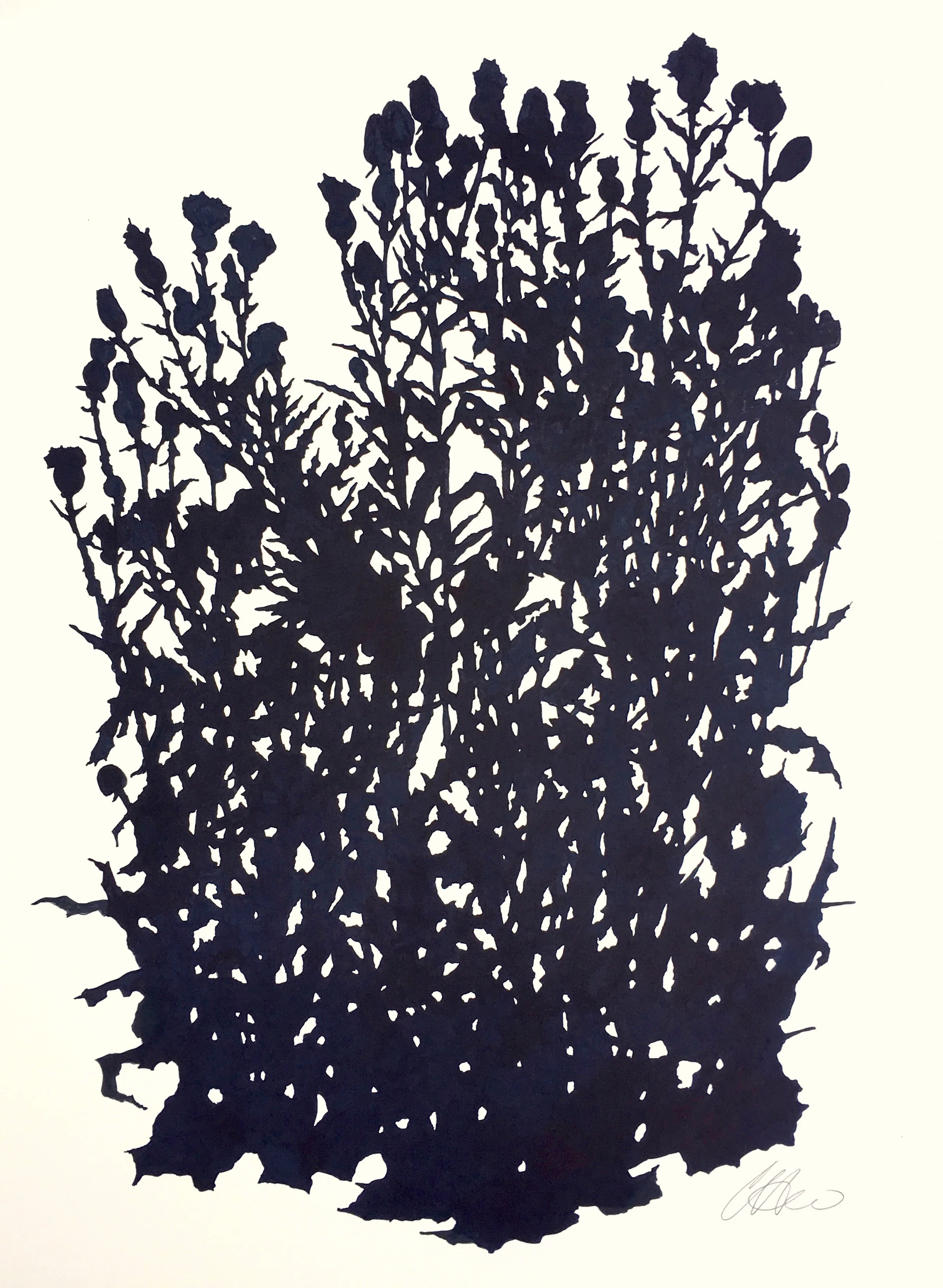 Thistle Study, Matfield Green 2 (August), ink on paper, 30 x 22.5” (sold)