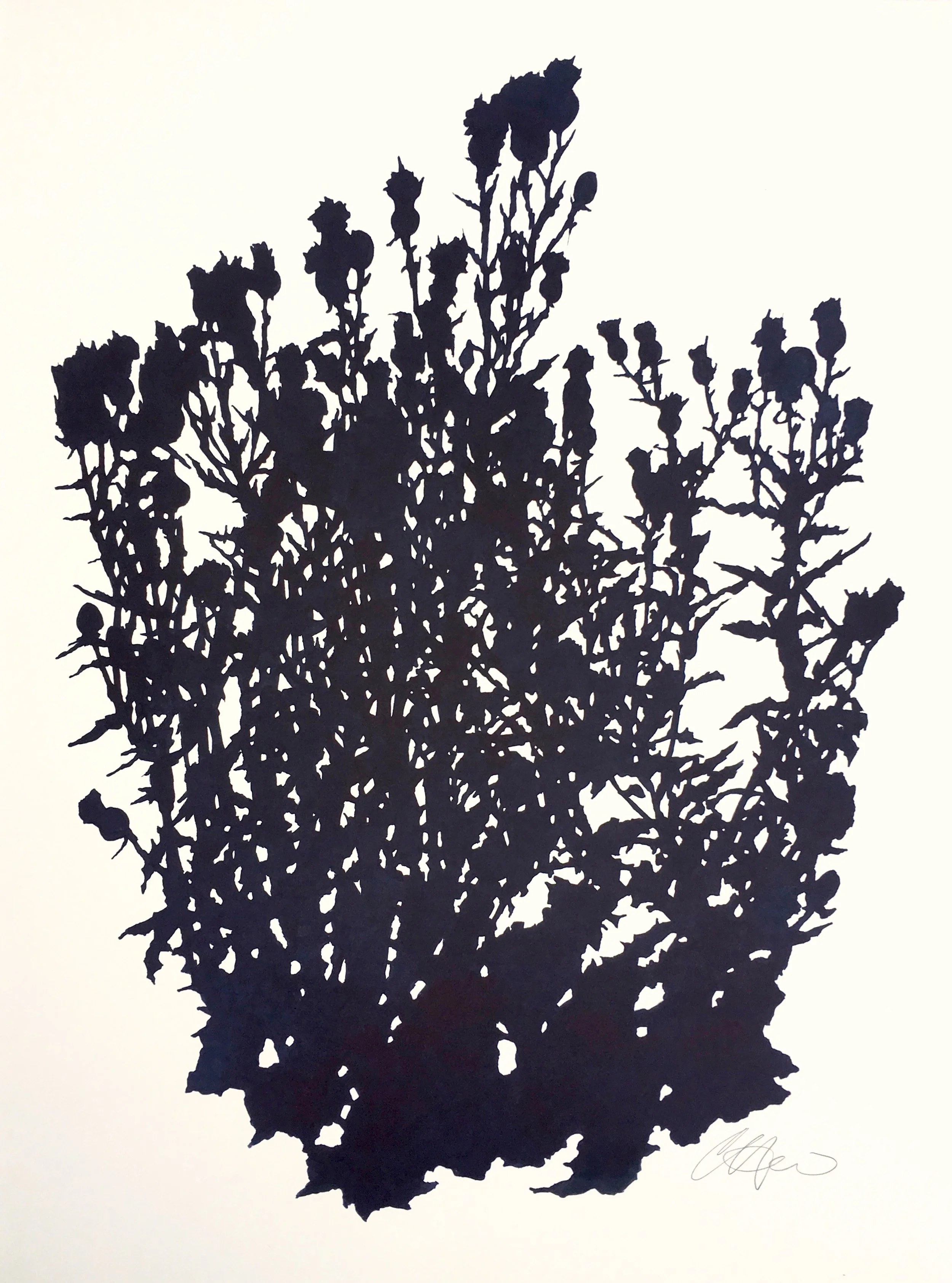 Thistle Study, Matfield Green 1 (August), ink on paper, 30 x 22.5” (sold)